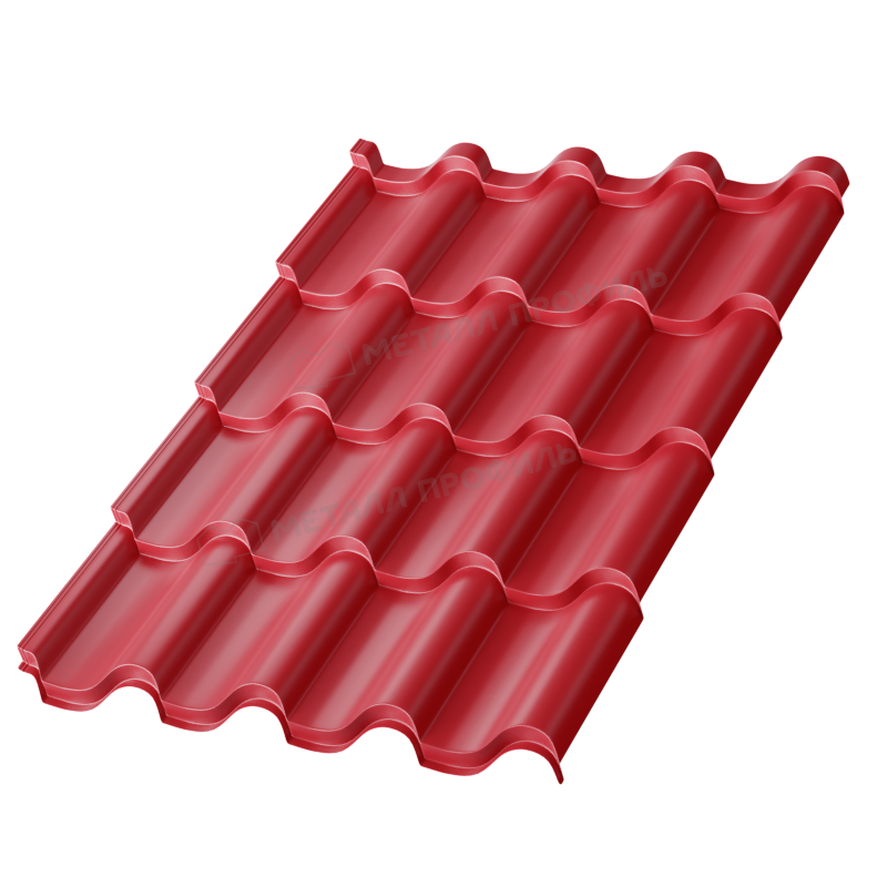 Профиль Монтерроса-SL имитирует классическую керамическую черепицу с плавными волнами и симметричным дизайном. Высота волны составляет 25 мм, а шаг – 350 мм, что облегчает монтаж и обеспечивает герметичность. Толщина металла 0,5 мм балансирует между прочностью и легкостью, позволяя выдерживать снеговые нагрузки до 150 кг/м². Такой профиль подходит для скатных крыш с углом наклона от 12 градусов, создавая элегантный вид без лишних стыков.